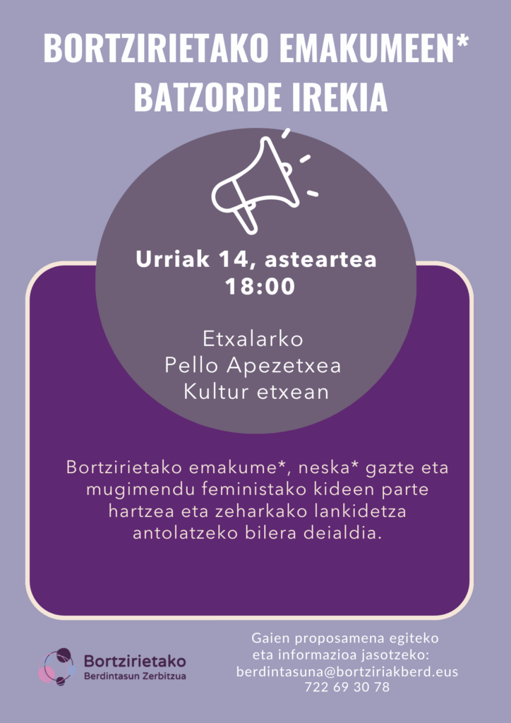 Dirigido a: Mujeres* mayores de 16 años. Prioridad mujeres de Bortziriak.